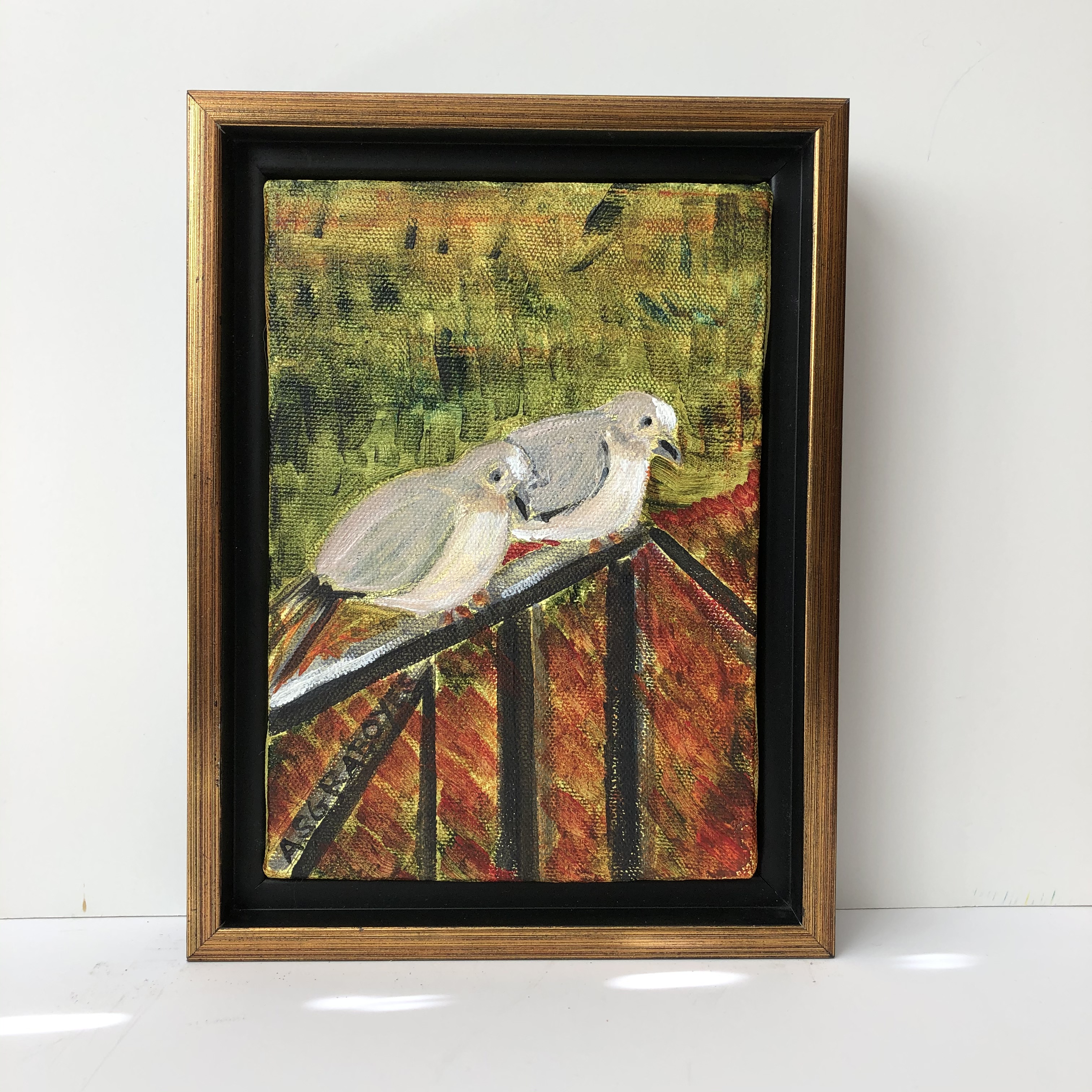 In recent years, I’ve traveled to Alaska, Maine, Florida, the Desert Southwest, Portugal, the Netherlands, and Scotland–drawing artistic inspiration from each of those magnificent landscapes. With the global pandemic, my travels are limited mostly to the two floors of my house and whichever streets are within walking distance. The hidden gift in this confinement is a reminder that one can find a world of sights within a tiny speck of earth–even from the windows I pass every day. This series of paintings, “Inside Looking Out,” reflects this reality–miniature paintings of a miniature world. Enjoy them in good health. Framed, ready to hang.